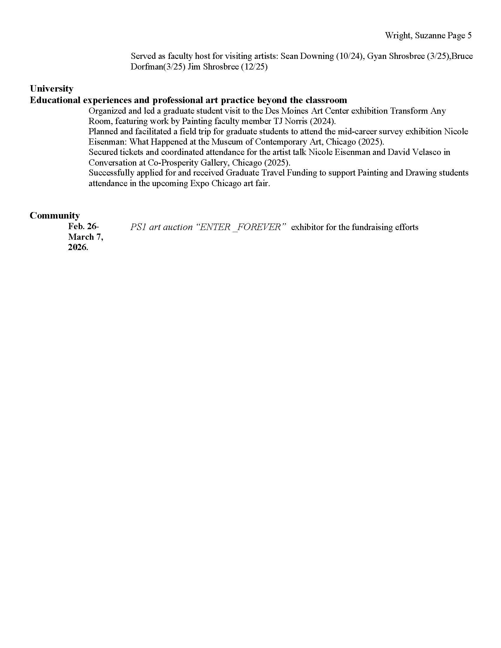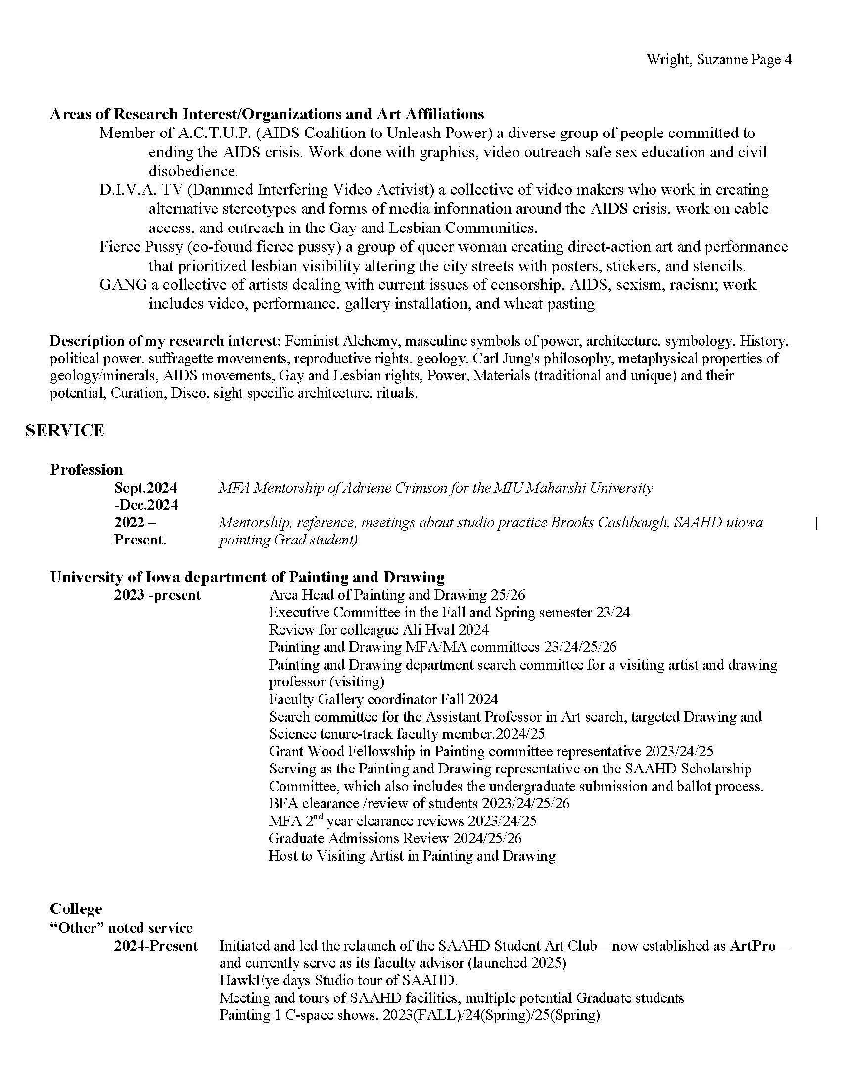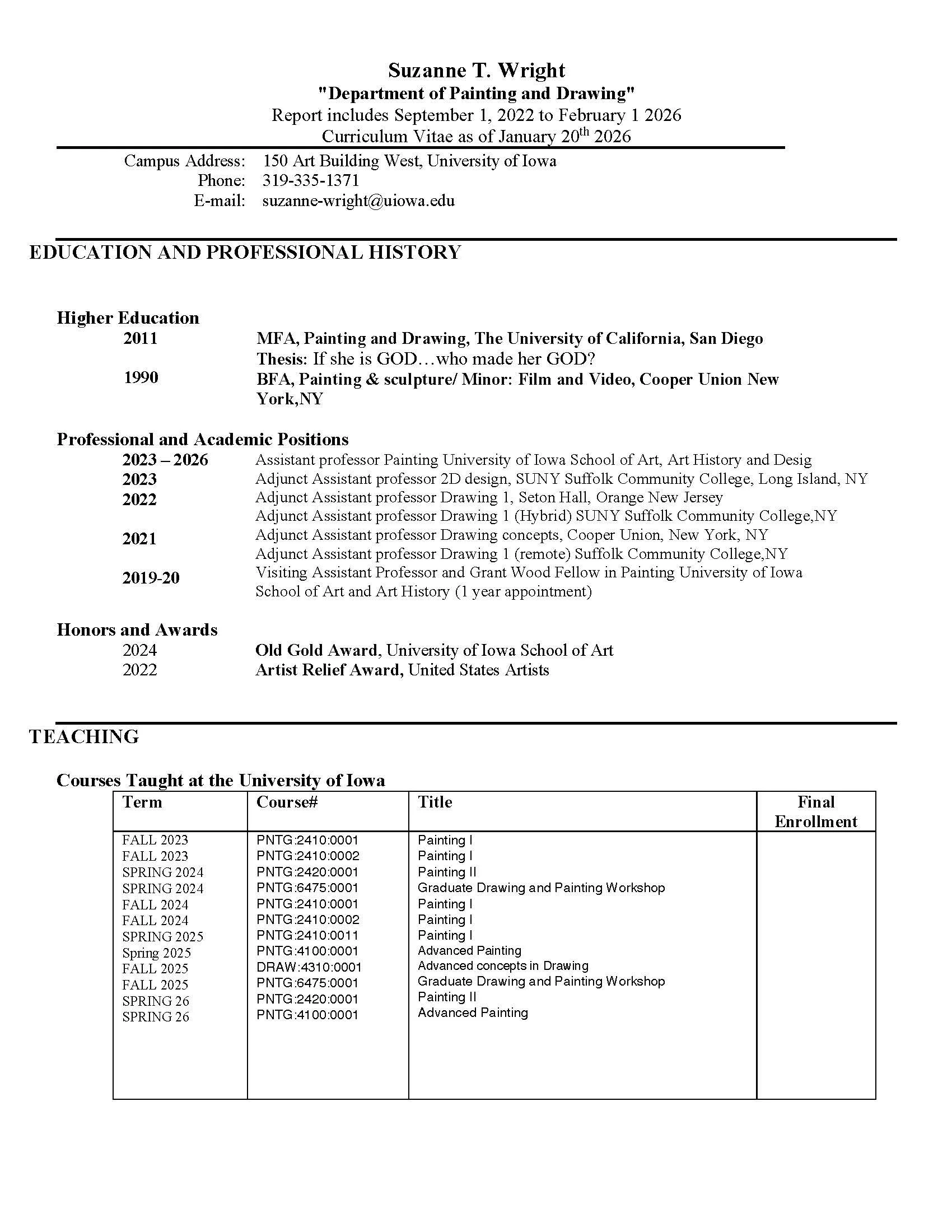 University of Iowa CV / Academic and Professional Record